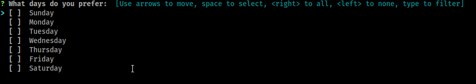 // perform the questions err := survey.Ask(qs, &answers) if err != nil { fmt.Println(err.Error()) return }