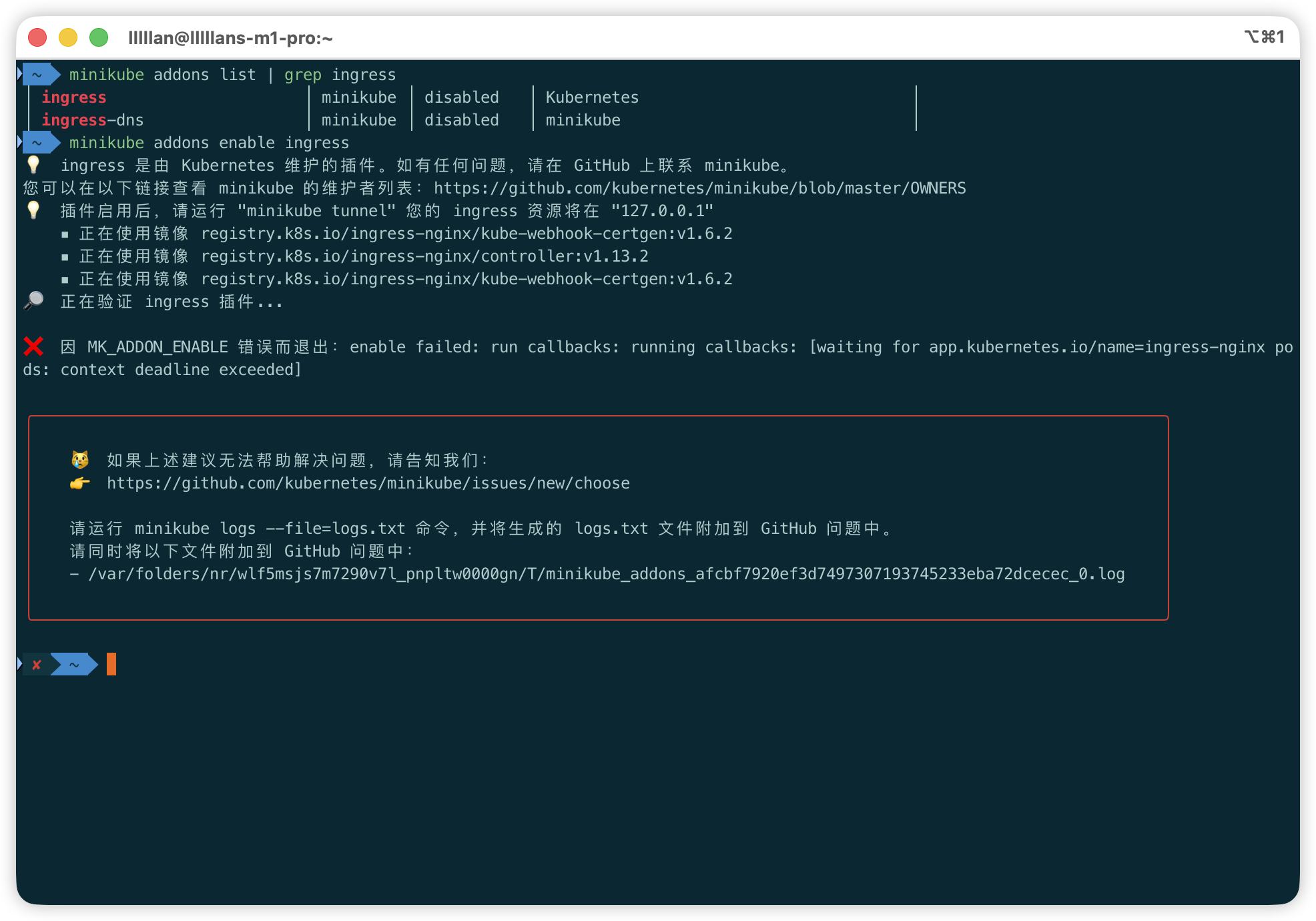 如果网络环境良好,命令执行后会自动拉取所需的镜像并完成部署。但在国内网络环境下,基本上都会遇到拉取镜像失败的问题。